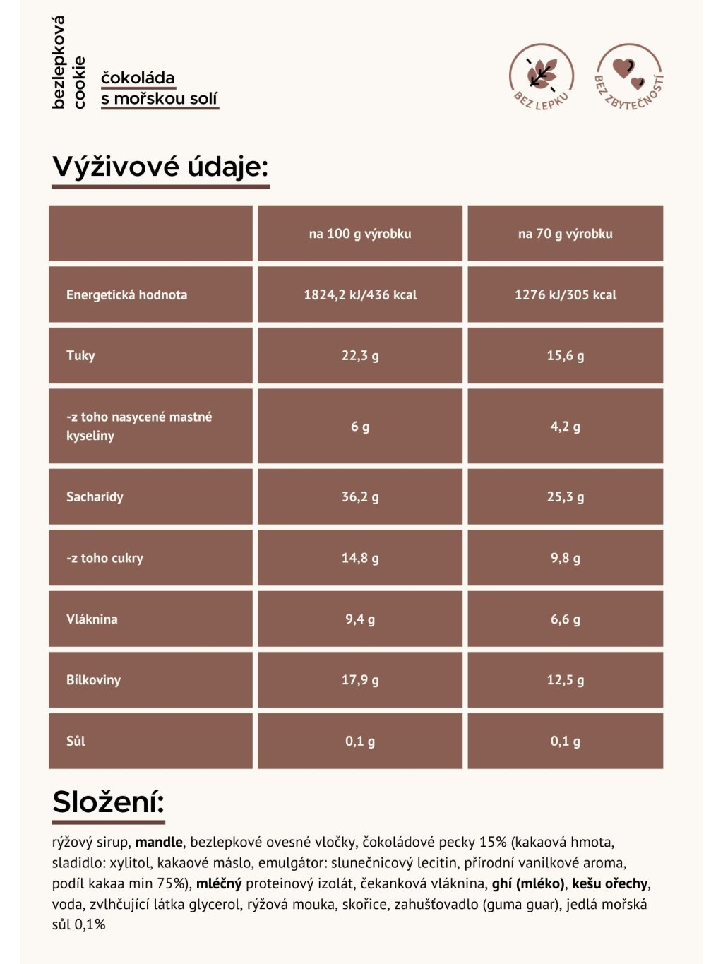 a energie. Abyste z něj získali co nejvíc, vybíráme pro vás kakao vysoké kvality. I tahle sušenka je pečená z bezlepkových vloček a netrhá partu všem našim bezlepkovým produktům.